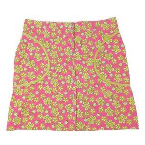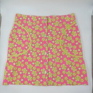 Lilly Pulitzer Skirt Womens Sz 2 Retro Floral Lady Bugs Dune Buggy Pockets Snap