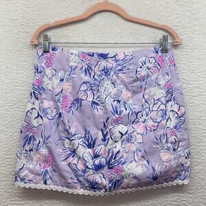Lilly Pulitzer Skort Womens Small Purple Pink Floral Scallop Trim Side Zip Beach