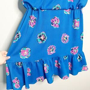 This beautiful Lilly Pulitzer dress features a vibrant blue and pink floral print.