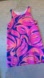 A vibrant sleeveless dress featuring a playful flamingo print. This eye-catching piece boasts a lively combination of pink, orange, and blue hues, creating a bold and cheerful aesthetic. The dress is designed with a comfortable, sleeveless cut, perfect for warm weather. Its relaxed silhouette ensures a flattering fit for various body types. Great for casual outings, beach vacations, or summer parties, this dress will make a statement wherever you go.