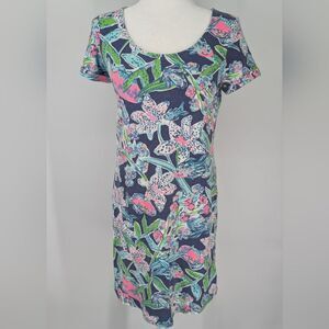 Lilly Pulitzer Small Tammy UPF Blue Green Pink Floral Tropical Resort Mini Dress