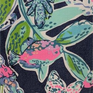 Navy Blue with Light Blue, Green, and Pink Floral and Fish Design