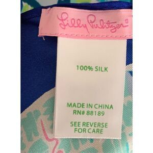 • Iconic Lilly Pulitzer Design: Authentic “Sneak a Beak” scarf with a bold peacock and tropical feather print in vibrant blues and greens.