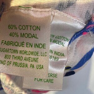 This sleeveless dress showcases a vibrant print in multicolor hues. Crafted from a soft cotton-modal blend, it offers comfort with a stylish flair.