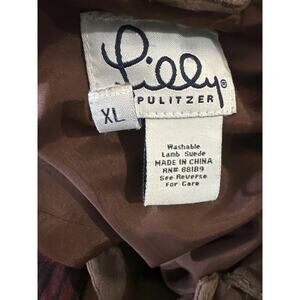 Lilly Pulitzer Soft Lamb Suede Jacket Brown Belted Button Lined XL Rare HTF