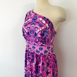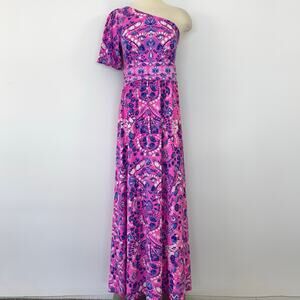 Lilly Pulitzer Solana One Shoulder Maxi Dress Havana Pink Turtle Tidepool L