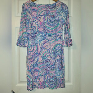Lilly Pulitzer Sophie Dress Happy as a Clam Ruffle Sleeve Green Pink Size Small