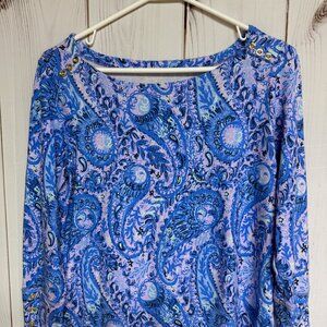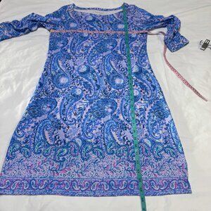 Lilly Pulitzer Sophie dress, Purple Iris paisley print dress, UPF 50 sun protection dress, rayon spandex shift dress, resort travel Lilly #LillyPulitzer #SophieDress #WomensMedium #PurpleIris #EUC