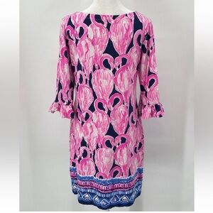 Lilly Pulitzer Sophie Ruffle Dress Size Small Pink Flamingo High Tide UPF 50