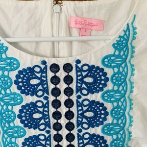 Lilly Pulitzer | Stephanie White Blue Embroidered Sleeveless Shift Dress 2
