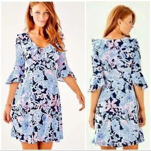 Lilly Pulitzer Stirling Dress BRIGHT NAVY Pink AMORE PLEASE Empire Midi size S