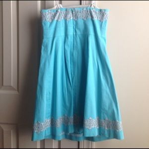 Gorgeous and rare Tiffany blue strapless sundress from the iconic Lilly Pulitzer. Very well made dress includes lining and plastic boning in bust area. Looks even better on/in person! Tag says 8, but had tailored to fit size 4! Note: first picture is of a cheaper version, couldn't find a model pic of the actual dress online.