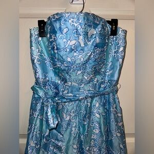 Lilly Pulitzer Strapless Blue and White Silk blend Dress 10 formal wedding summer spring