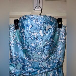 Lilly Pulitzer Strapless Blue and White Silk blend Dress 10 formal wedding