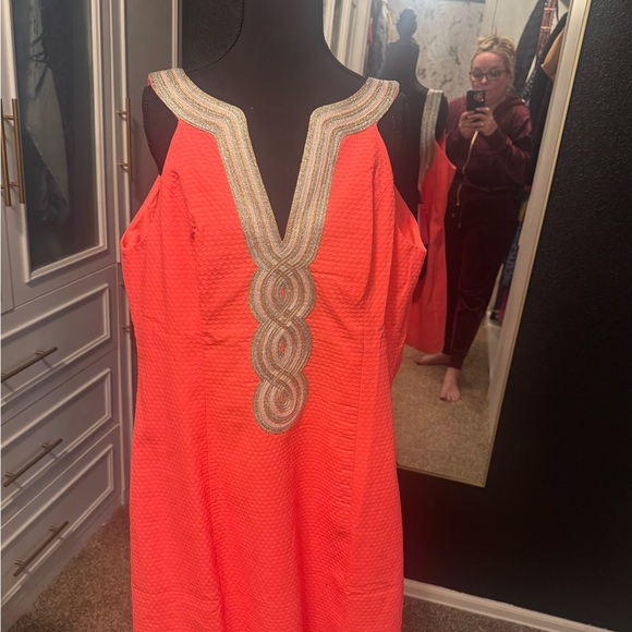 Lilly Pulitzer Strapless Coral Dress with Silver Accents