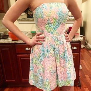 Only worn once. There is slight discoloration on the top bodice due to spray tan, but that doesn't show on the front.