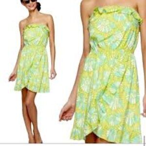 Lilly Pulitzer Strapless Dress Women XS-S Pink White Good Palm Leaf Eyelet Trim