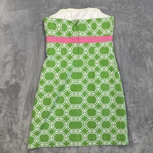 Lilly Pulitzer Strapless Dress Women’s 2 Green Pink Geometric Rosette Cotton