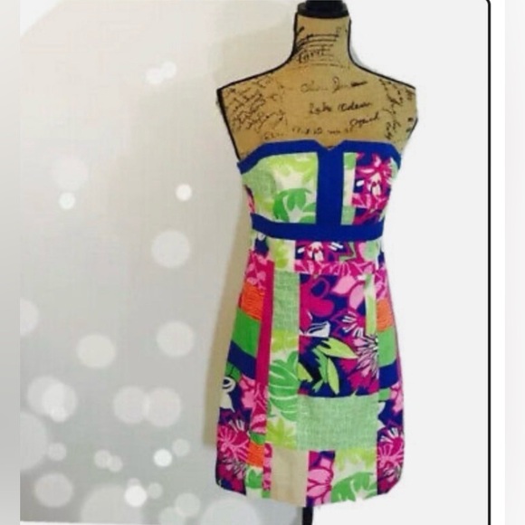 Lilly Pulitzer Strapless Dress in Pink, Green, and Blue 4