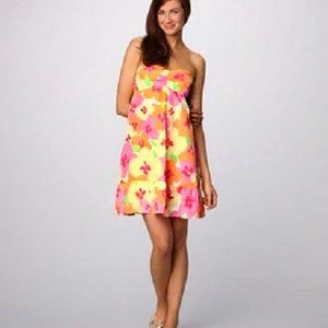 Lilly Pulitzer Strapless Floral Dress - Vibrant Pink, Orange, Yellow