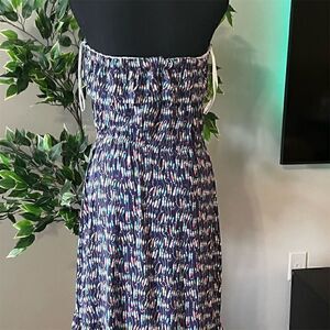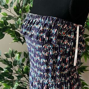 Keywords: Lilly Pulitzer, women's dress, medium, strapless, ruffle, knee length, multicolor, Oh Buoy pattern, casual, party, cocktail, travel, rayon, spandex, pre-owned.