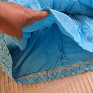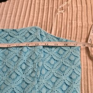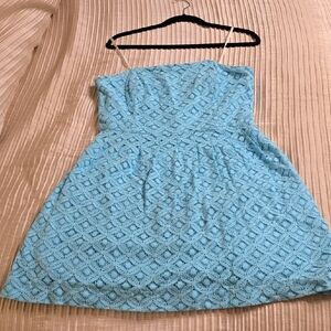 EUC. Chic strapless dress in turquoise. Features a textured pattern. Ideal for summer outings.