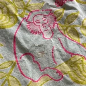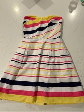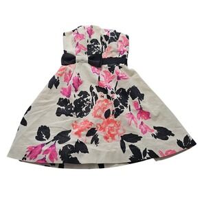 Charming strapless dress with a playful safari print. Bold pink and yellow animal motifs on a mint background. Light, breezy look perfect for summer days. A couple of small light stains on front of skirt (see photos)