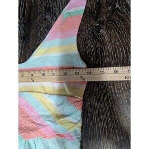 This Lilly Pulitzer maxi dress is ideal for a beach vacation. The sleeveless design and lightweight 100% cotton material will keep you cool and comfortable. It features a vibrant multicolor striped pattern.