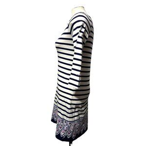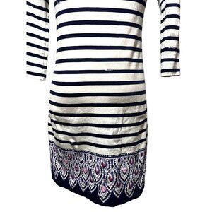 Lilly Pulitzer Striped Mini Cotton Sun Dress Sz Small Navy Blue & White 3/4 Slee