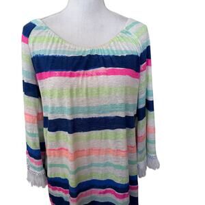 Lilly Pulitzer Striped Tassel Hem Bell Sleeve Swim Cover-Up Linen Tunic Dress M