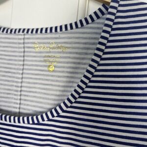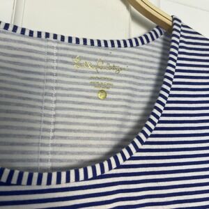 Lilly Pulitzer Striped T-shirt Dress Navy Stripe 100% Cotton M Neon Orange Navy