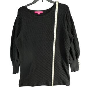 Lilly Pulitzer Sweater Dress XL Black Textured Cable Knit Button Cuffs Preppy