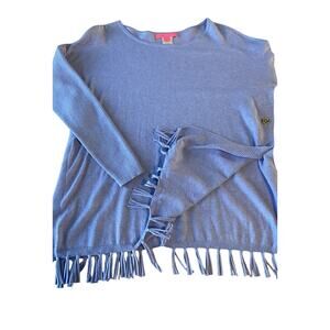 Lilly Pulitzer Sweater Womens Size Small Blue Fringe Cozy Long Sleeve Pullover