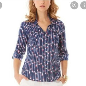 Lilly Pulitzer Swim Lanes Oh Buoy Cruiser Camp Nautical Button Down Blouse(4)