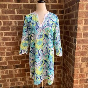 Lilly Pulitzer Women's Tiger Lily Print Lightweight 100% Cotton 3/4 Sleeve Tunic Dress Summer Swim Cover-Up Size Small.