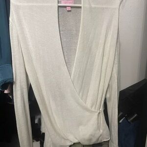 Lilly Pulitzer Sydelle Wrap Sweater, Ivory, Cashmere Blend, Size Medium