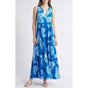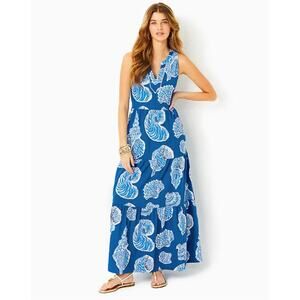 Lilly Pulitzer Sydnee Maxi Dress - L Barton Blue Shell Of A Good Time Oversized