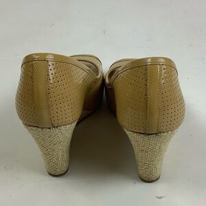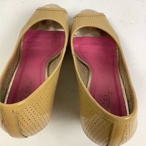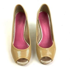 Lilly Pulitzer Sz 6 Leather Espadrille Wedge Peep Toe Sandals Tan Perforated