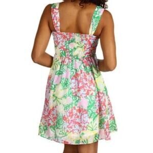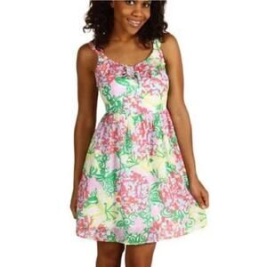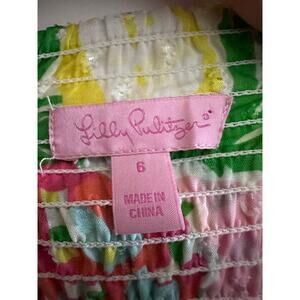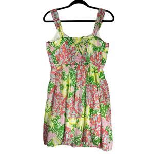 Lilly Pulitzer Sz 6 Peggy Smocked Pink & Green Sundress Pastel Ruffle Preppy Floral