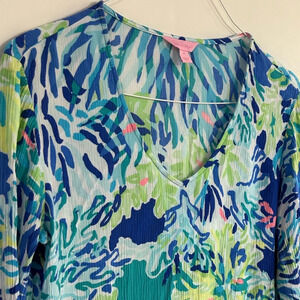 Lilly Pulitzer Sz M Lantana Tunic Top Wade & Sea Crinkle Gauze V-Neck Coverup