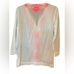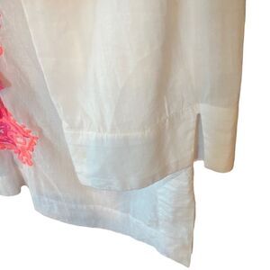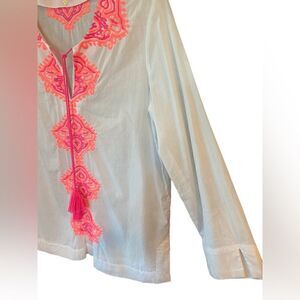 Lilly Pulitzer Sz S White Neon Pink Boho Embroidered Tassle Ties Light Shirt