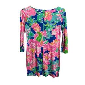 Lilly Pulitzer Sz XXS Marlowe Dress Jungle Utopia Floral Pink 100% Pima Cotton