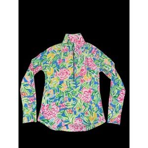 Lilly Pulitzer Sz XXS Skipper Popover UPF 50+ 1/2 Zip Grove Garden Floral
