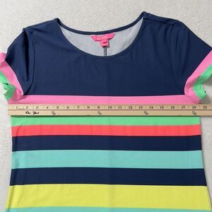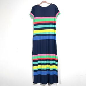 Lilly Pulitzer Tae Maxi Dress Sz L Multicolor Gecko Striped Side Slits Beach
