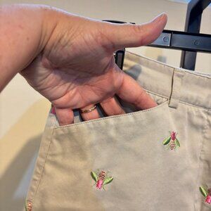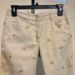 Lilly Pulitzer Tan Khaki Embroidered Bees Capri Pants