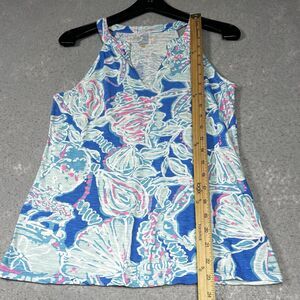 Up for sale: Lilly Pulitzer Tank Top Size Small Arya Bay Blue Into The Deep Pink Shell Print