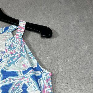 Lilly Pulitzer Tank Top Size Small Arya Bay Blue Into The Deep Pink Shell Print