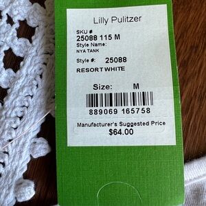 Lilly Pulitzer Tank Top White Size Medium Pom Pom Trim Crochet Racerback NWT