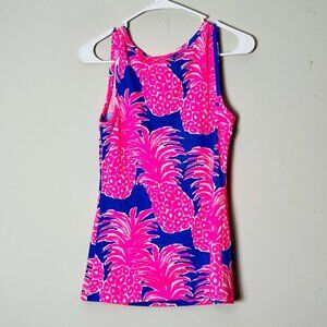 Lilly Pulitzer Tank Top Women XS Pink Pineapple Print Sleeveless Casual Top