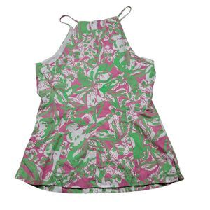 Lilly Pulitzer Tank Top Women's 4 Green Pink Annabelle Forgot My Trunks Vacation